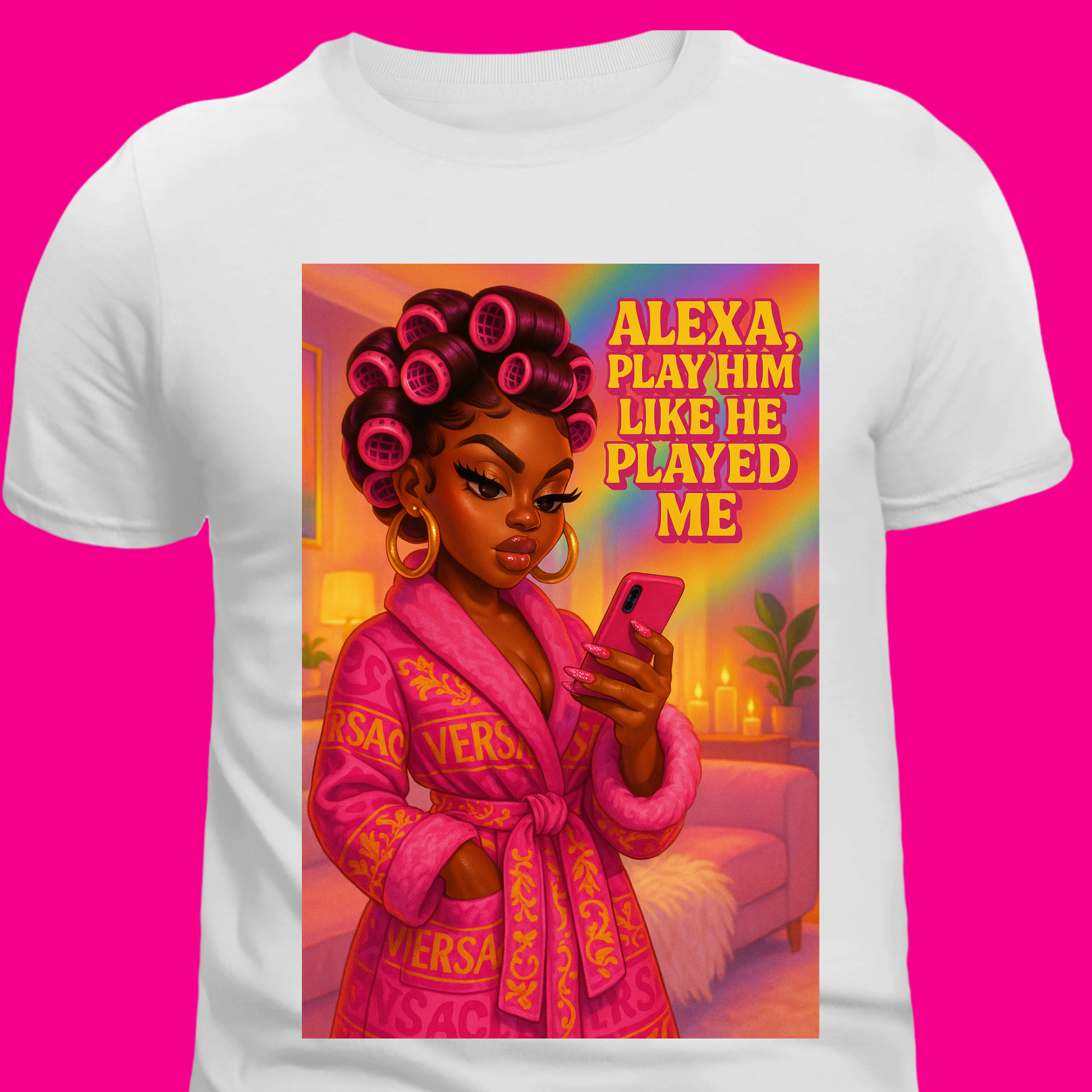 Cue the petty playlist and pass the remote 💅🏽 This tee is giving glam revenge energy with a side of luxury lounge vibes. Featuring a bold digital illustration of a baddie in full self-care mode, it’s the perfect look for those who heal… but don’t forget. Whether you're in your feelings or just feelin' yourself, this one’s for the heartbreakers and the healed.