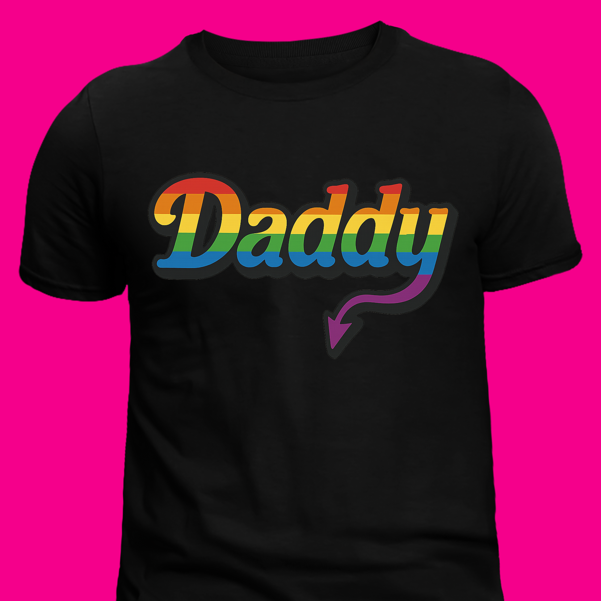 Say it loud, wear it proud! Our “Daddy” tee turns heads with bold rainbow vibes and a cheeky lil’ devil tail to match that confident energy. Whether you’re owning your moment or giving someone their fantasy, this shirt speaks fluent flirtation and fierce identity.