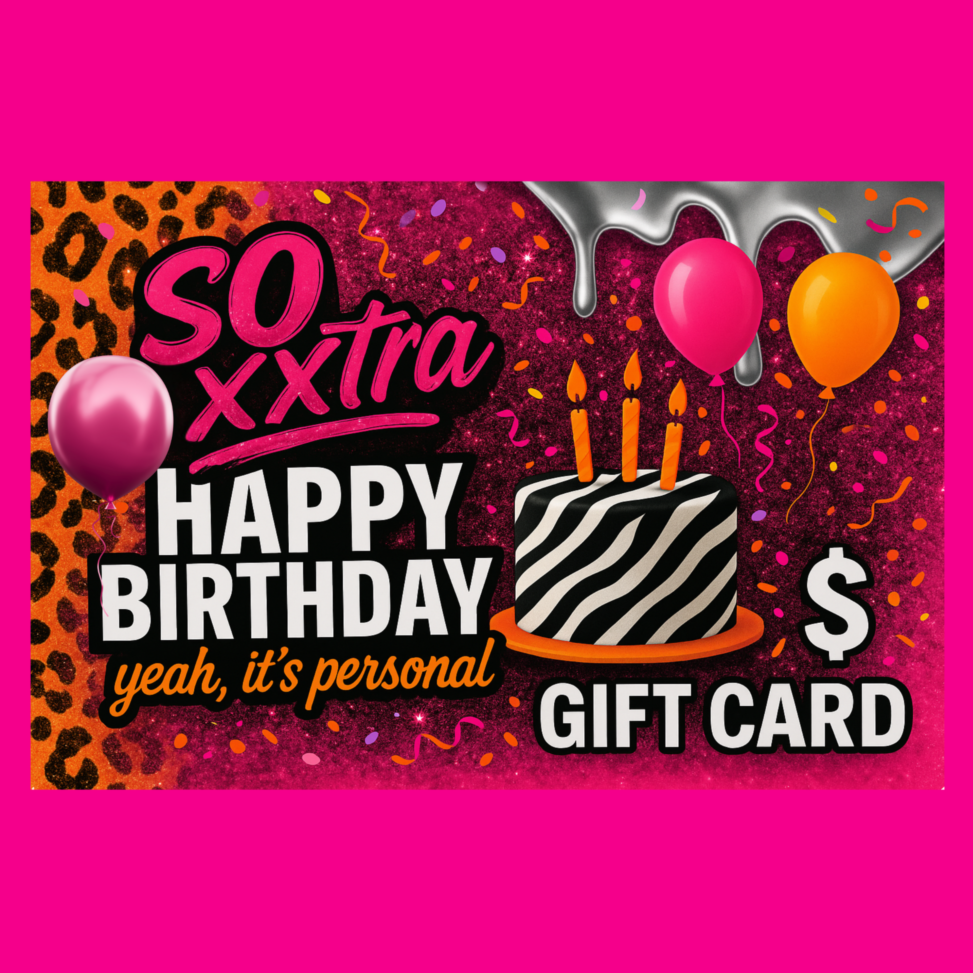 Our digital gift cards are the perfect way to let them choose their own drip β whether it's a custom shirt, memorial design, party graphic, or that bold birthday tee. Sent straight to their inbox, full of glitter, glam, and good energy.